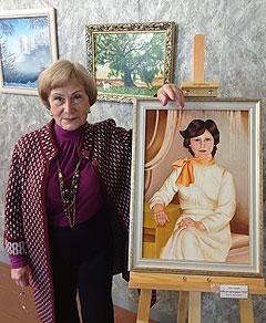 В Называевском историко-краеведческом музее к назначенному времени собрались близкие, друзья, знакомые Надежды Ивановны, чтобы увидеть её 19 картин, написанных в последние два года. Это настоящая феерия цвета полотен с белыми лилиями, чудными ромашками и хризантемами, с душистой сиренью, изящными розами и роскошными нарциссами. В коллекции собраны и картины, передающие природу во всей её красе: «Осень в лесу. Берёзки», «Первый снег», «Изморозь», «Море волнуется», «Зацвёл багульник». Среди них расположился и автопортрет под названием «35», написанный в этом году. Вы не ошиблись, Надежда Ивановна нарисовала себя 35-летней, сидящей у стола в нежном белом платье с красиво повязанным на шее платком.