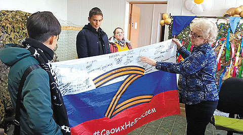 Еще одной точкой квеста является волонтерское движение «Помощь нашим Zемлякам». Здесь волонтёры Светлана Алексеевна Сусанина и Наталья Николаевна Корохова проводят мастер-класс по плетению маскировочных сетей. Ребята узнают о работе группы по фасовке каш, формированию аптечек, пошиву антидроновых одеял для участников специальной военной операции. И что примечательно, некоторые по завершению квеста ещё не раз приходят на помощь волонтёрам.
