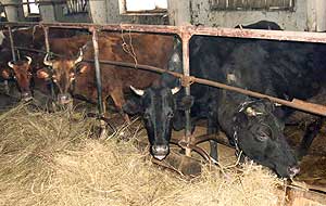 Посещение фермы оставило у меня приятное впечатление. Мы приехали ближе к полудню, но оказалось, что работа на ферме кипела вовсю. Скотники только закончили раздавать сено, которым коровы аппетитно похрумкивали. А следом на ферму доставили воду, и началось поение скота. За всем этим процессом наблюдали начальник участка Владимир Танский и бригадир животноводства Николай Емельяненко. Им-то я и стала задавать интересующие меня вопросы. Как выяснилось из беседы, на день поездки (состоялась она 17 февраля) на ферме насчитывалось 120 фуражных коров. Из них с начала года успело отелиться двадцать пять, причем практически все - только в феврале. Поэтому пока надои не высоки, но с каждым днем этот показатель возрастает, и у доярок Оксаны и Юлии Коленковых, Ларисы и Татьяны Шерстюк работы прибавляется. А рядом с ними всегда верные помощники - скотники Владимир Анечкин, Валентин Терещук и Владимир Бабков. Они и скот кормят, и за порядком следят.  Такое ответственное дело, как выхаживание телят, на Лорис-Меликовской ферме доверено Татьяне Коваленко и Марине Борисенко. Дело свое телятницы знают досконально, поэтому их подопечные хорошо набирают в весе и дружно подрастают. Ну, а за молодняком приглядывают Иван и Александр Касаткины, Владимир Борисенко и Борис Гавриленко. В общем, каждый занят своим делом.  Но все же нынешняя зимовка не обошлась без неприятных сюрпризов. "Кормов по осени у нас на участке заготовили мало, - говорит Николай Емельяненко. - И поэтому сено у нас сейчас с подвоза. Его мы покупаем или меняем на зерно у частников. Тем не менее, ни одного дня скот у нас голодным не стоял. Не забудутся и нынешние морозы. Сначала перемерз водопровод, теперь мы вынуждены доставлять воду на ферму из котлована с помощью трактора и водовозной бочки. А в самые холода сгорел электромотор, который был задействован на откачке отходов. Ребята вынуждены были вручную чистить ферму, вкалывали как могли. Наконец, мотор заменили, откачку наладили. Вот так, техника не выдерживает, а люди наши работают, несмотря ни на какие трудности".  Наталья Гладышева. Фото автора.
