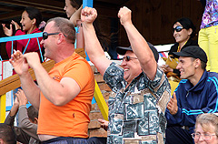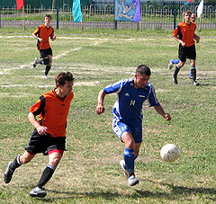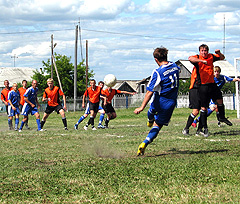 И вновь мяч в центре поля. Начинается очередной розыгрыш, в котором удачливее оказывается наша сборная. Несколько точечных пасов, и 10-й номер Евгений Барсуков эффектно "вкатывает" мяч в шербакульские ворота. Казалось бы, игра уже сделана. Но называевцы, по-моему, рановато начали праздновать победу и как-то вяло отреагировали на очередной штрафной удар. А шербакульцы боролись до последнего и буквально за несколько секунд до финального свистка сравняли счет. Кстати, автором последнего гола стал Руслан Барышников - уроженец села Муравьевка.