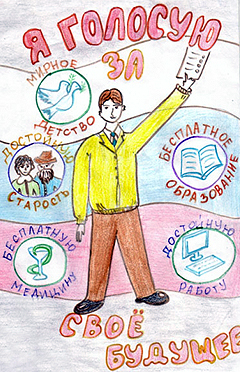 Принять участие в этом творческом состязании могут учащиеся всех школ города и района, а также студенты профессионального училища. Да и поработать им есть над чем. Например, самым младшим – школьникам с 1 по 4 класс предлагают представить на конкурс рисунки, отражающие тему выборов. Для ребят постарше (5-8 класс) и задание, соответственно, посложнее. Им необходимо создать проект пригласительного билета (или в бумажном, или в электронном варианте), да такого, чтобы заинтересовать людей и действительно побудить их прийти на выборы. А для старшеклассников придумали следующее испытание: они должны снять и смонтировать небольшой видеоролик, в которых авторам предлагается рассказать о выборах, о том, для чего они нужны и как, по их мнению, выборы могут повлиять на развитие тех населенных пунктов, где они проживают.