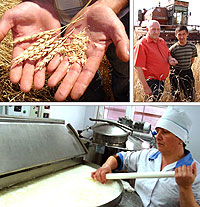 На поле гостей встречал руководитель хозяйства Владимир Холохолов, который рассказал, что полеводам удалось убрать пока лишь 1200 га, и требовало это значительнейших усилий. И как подтверждение тому – ситуация, произошедшая в тот же момент. Один из комбайнов, двигавшихся по полю, забуксовал, и его пришлось вызволять с помощью дежурившего тут же «Кировца». Не успели отцепить трос, как аналогичная помощь потребовалась другому комбайну.