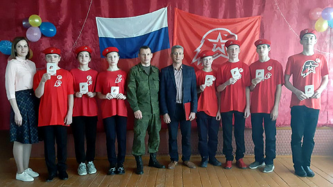 По сложившейся традиции новоиспеченным юнармейцам были вручены значки и удостоверения Всероссийского детско-юношеского военно-патриотического общественного движения «ЮНАРМИЯ».