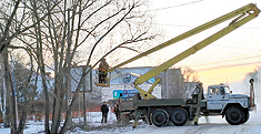 Несмотря на морозную погоду, называевские энергетики продолжают работы по плановому обслуживанию воздушных электролиний.