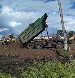 Представители подрядной организации (отобранной согласно заключённых договоров с ООО «Регион Заказ»), неоднократно приезжали в наше село. Первоначально они изучили образцы почвы, определили объем демонтажных и строительных работ. В июне был проведен демонтаж и земляные работы. А в июле подрядная организация начала завоз необходимых строительных материалов. Затем была произведена выкладка основания и тротуарной плитки, установлены новый памятник и мемориальные плиты.