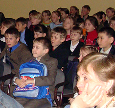 В прошедшую пятницу в актовом зале гимназии, что называется, яблоку негде было упасть. Он до отказу был заполнен учащимися начальных классов школ города, которые пришли посмотреть спектакль «Опасная сказка» Омского государственного театра кукол, актера, маски «Арлекин».