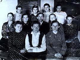 2 ряд: Миллер Устинья Андреевна - прачка; Плесовских (Гульба) Зинаида Андреевна - бухгалтер; Егоров Сергей Алексеевич - директор детского дома; Шлоссер Елена Петровна (моя мама) - швея; Полина Егоровна - медсестра.