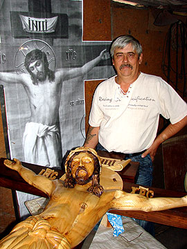 На изготовление распятия высотой два метра у Сергея Боборыкина ушло три месяца. И сегодня результат его труда поражает воображение: каждая деталь выполнена тщательно и достоверно, а само распятие дышит особым магнетизмом и взывает к состраданию.