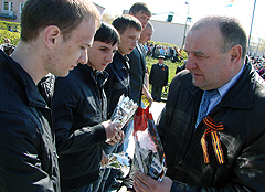 А время между тем бежит вперед. И вот уже рядом с убеленными сединами солдатами появляются те, кому только предстоит примеряться к этому высокому званию - называевские призывники. Этим будущим воинам теперь нужно защищать наше Отечество. "Я обещаю, что мы будем служить честно и стоять за свою Родину, - говорит один из них Анатолий Пичкобий - А ветеранам хочу сказать огромное спасибо за то, что все мы живем под этим мирным небом".