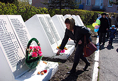 Метроном начинает свой печальный отсчет. И эту в миг установившуюся тишину прерывают лишь оружейные залпы. А в руках ветеранов печально дрожат красные гвоздики - то ли от ветра, то ли от волнения их обладателей. Кому как не им, прошедшим суровыми дорогами войны, знать, какую цену за эту Победу заплатил наш народ. И как сказал председатель районного совета ветеранов Евгений Безлепкин: "Сколько слез пролито матерями, женами, даже могучая река Волга не смогла бы вместить все эти слезы!. А сколько крови пролито народной! Какое сердце нужно иметь и женщинам, и мужчинам, чтобы навечно проводить на фронт своих близких…".