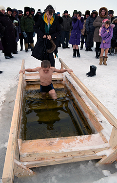 Накануне Крещения Патриарх Московский и всея Руси Кирилл сказал: «Когда будете входить в иорданские воды, помните, что это не развлечение, это не народный обычай, это не часть нашего фольклора, а это участие в таинстве соприкосновения святыни. Осените себя троекратно крестом, опуститесь в иорданские воды, молитесь в этот момент о себе и близких своих, чтобы Господь преклонил милость к вам». И первые из тех, кто опускался по сходням в ледяную купель, делали это степенно и со знанием дела, окунаясь и крестясь. Например, Андрей Масливченко окунается в иордань уже не первый год. «Ощущения непередаваемые, - говорит он, - как будто заново на свет родился. Да и последствия радуют – сколько купаюсь, столько лет и не простужаюсь».