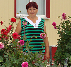 Супруг Анатолий Алексеевич привозит землю, закупает саженцы груши, абрикосов, слив, винограда. А я их высаживаю в саду. Иногда помогают внуки. Чтобы всё успеть, встаю в 6 часов утра. Какие-то цветы сею, другие выращиваю рассадой. В этом году решила перейти на многолетние и кустовые цветы: уже прижились кизил, китайские розы, пионы. Всё моё садовое хозяйство требует хорошего полива и ухода. Как только расцветает первый цветок, я ему говорю: «Родненький ты мой, как тебе я рада».